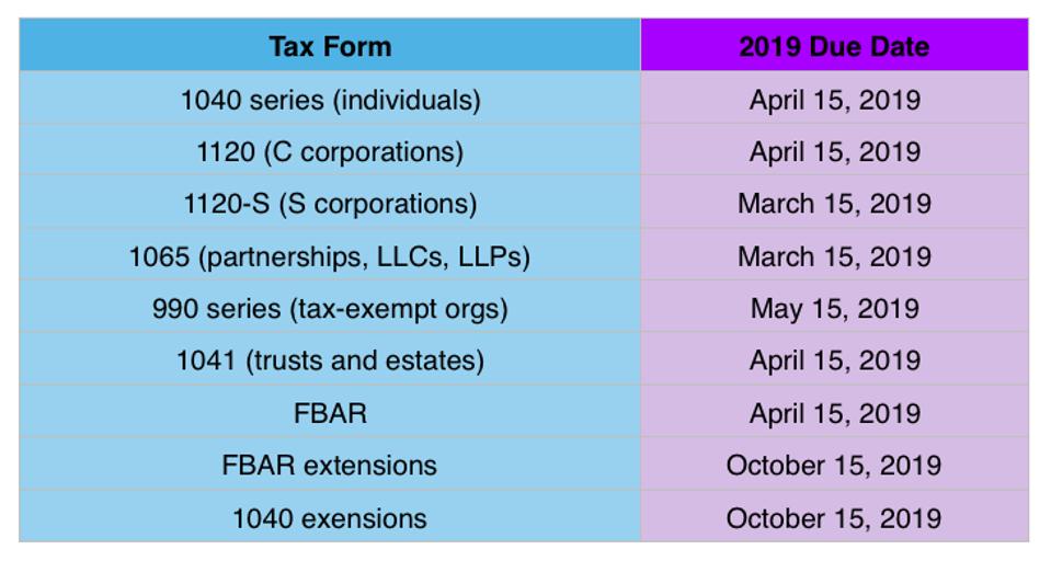 When Are 2018 Tax Returns Due Every Date You Need To File Business Taxes In 2019
